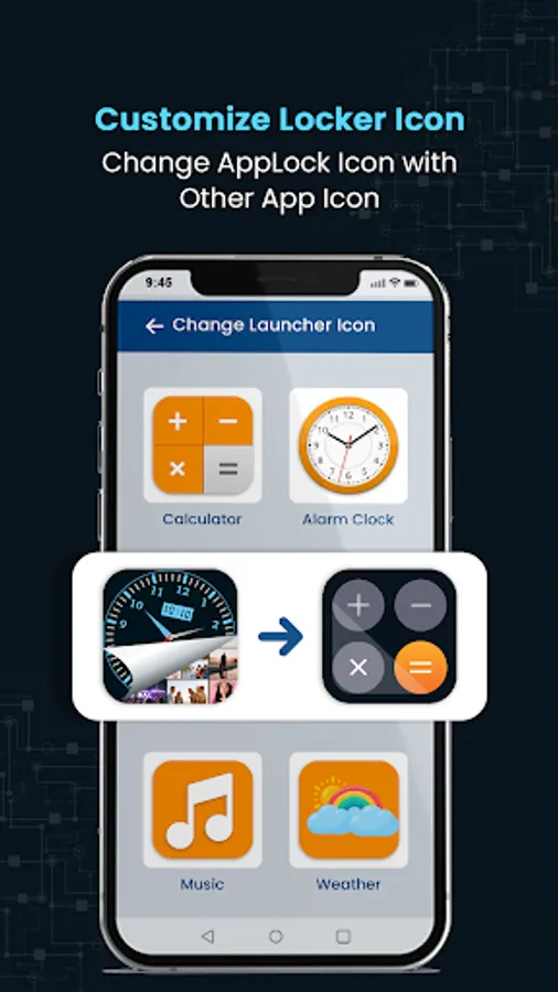 • Launcher Icon Change: Make your gallery lock, photo hide app icon even more secret with other icons like Whether, Music, Calculator, etc.