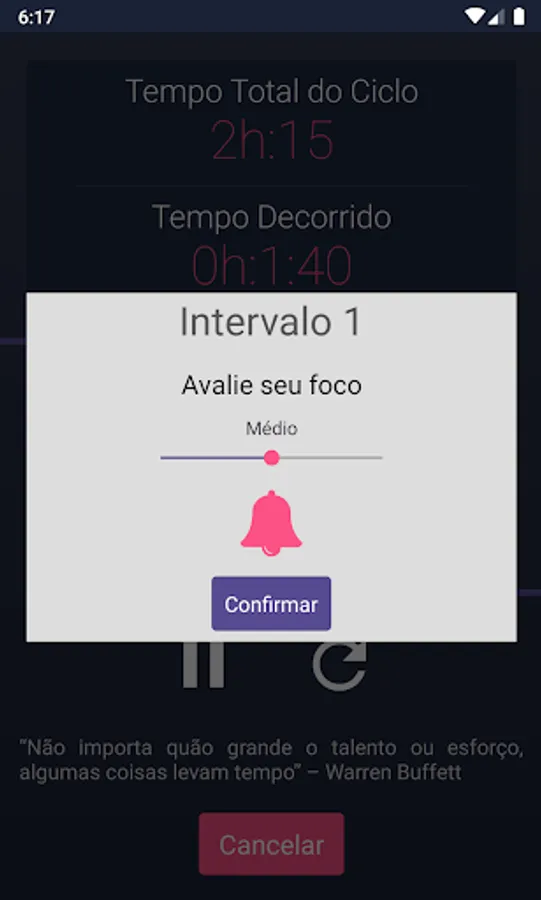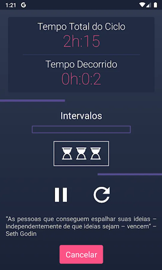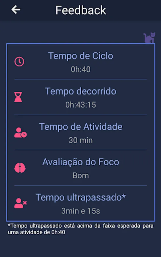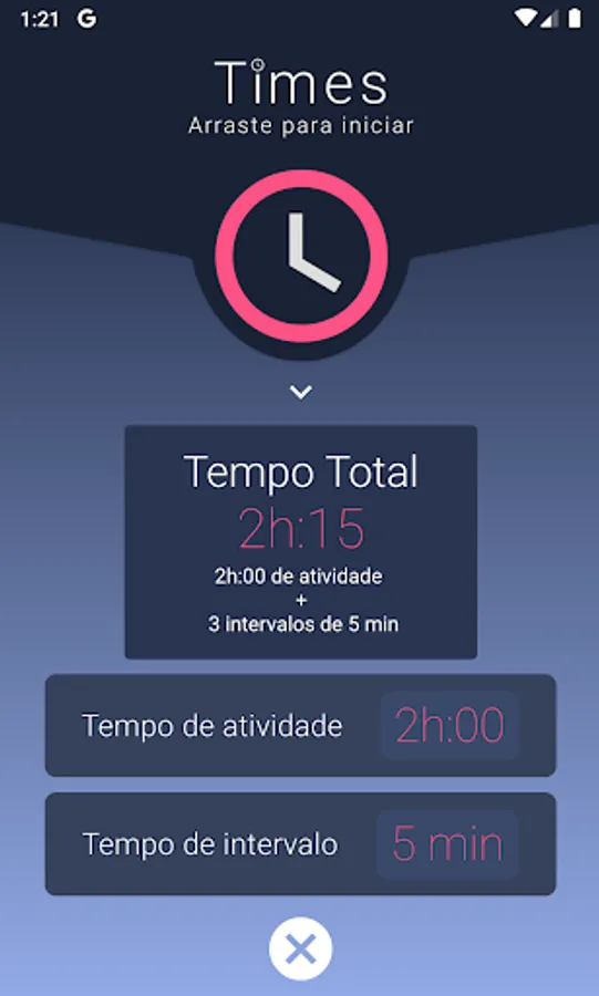 Create a cycle defining uptime and intervals. TIMES will manage the correct time for the start and end of breaks, help you inspect your time usage and deliver feedback on your activity cycle at the end for analysis and improvement of your focus.