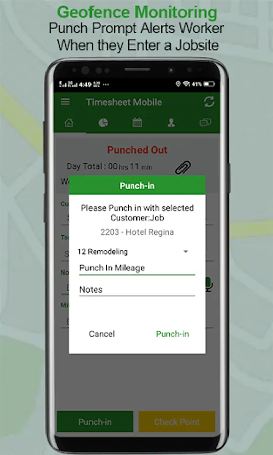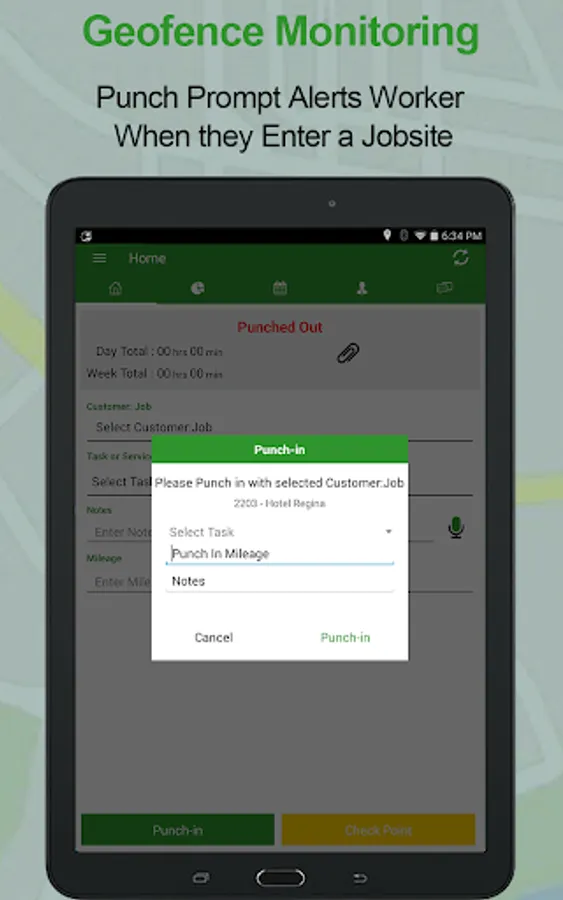 • Punch Prompt alerts employees when they enter and exit a geofenced jobsite