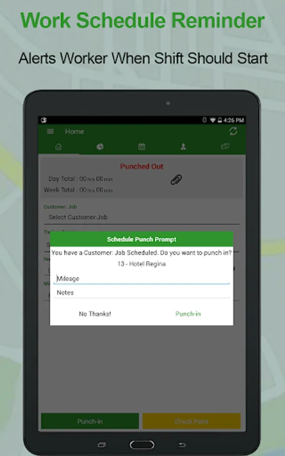 Geofenced enabled Timesheet App with Autopunch includes employee scheduling, auto travel, project checklists and team messaging. This is the all-in-one app for your mobile workforce!