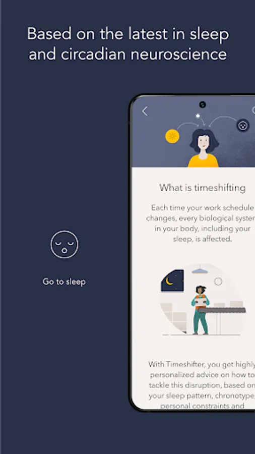 Timeshifter - The Shift Work Edition - was developed by world-renowned scientists to help shift workers tackle the underlying problem of circadian and sleep disruption. With Timeshifter, you get highly personalized advice based on your sleep pattern, chronotype, work schedule, and personal constraints and preferences.