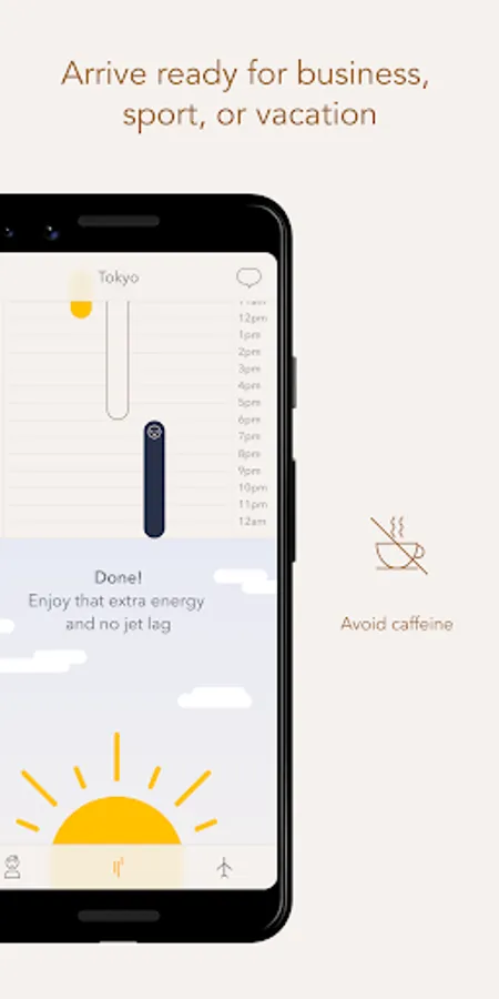 Whether you’re traveling for business or going on a vacation, Timeshifter will help you arrive at your best.
