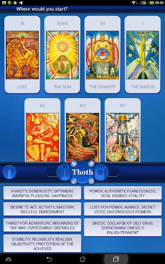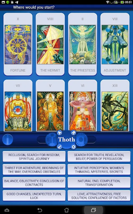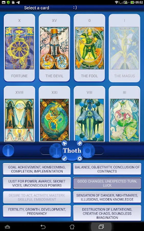This is a simulator for memorizing the Tarot cards of Thoth.