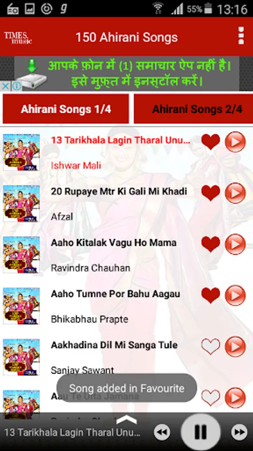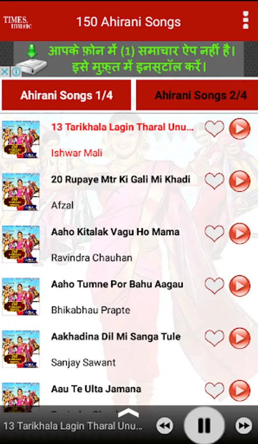 3. Featuring 150 Ahirani Songs. Once Streamed Song can be played in OFFLINE Mode also.