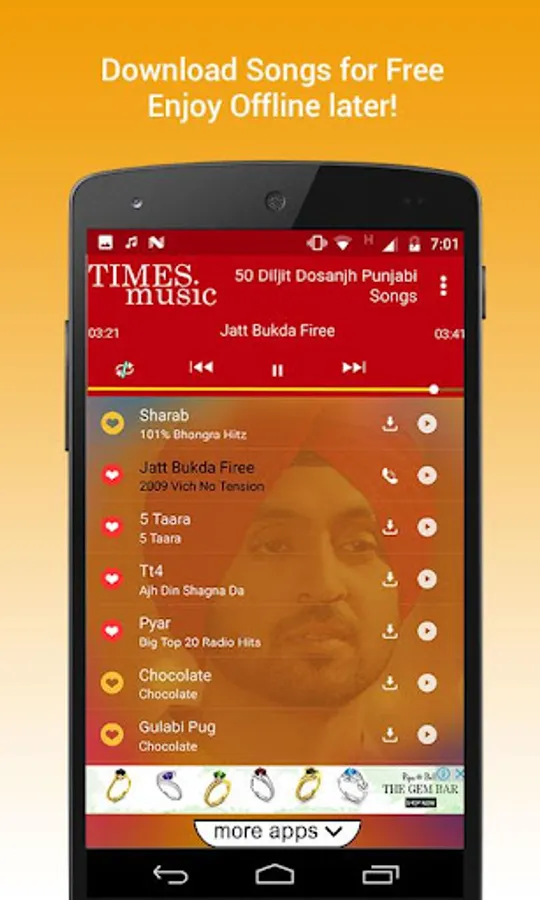 Winjit Technologies and Times Music have together brought the best of Punjabi songs by Diljit Dosanjh in this app.