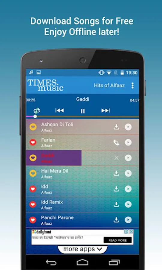 The app lets you download, listen and also lets you mark your favourite Punjabi songs. The app is a store house of the best songs by Alfaaz.