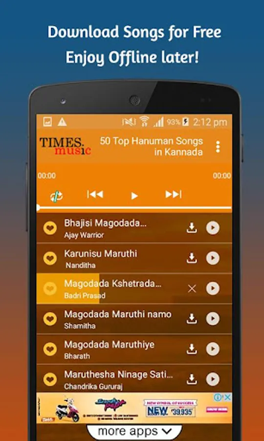 The app lets you download, listen and also lets you mark your favourite songs. The app is a store house of the best Lord Hanuman songs in Kannada for the devotees of Lord Hanuman.