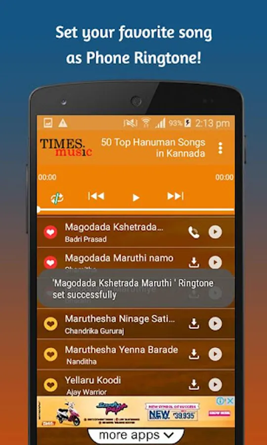 For ardent devotees of Lord Hanuman, Winjit Technologies along with Times music have created an application ‘50 Top Hanuman Songs in Kannada’ where you will find most melodious songs devoted to Lord Bajrang Bali, Hanuman in Kannada.