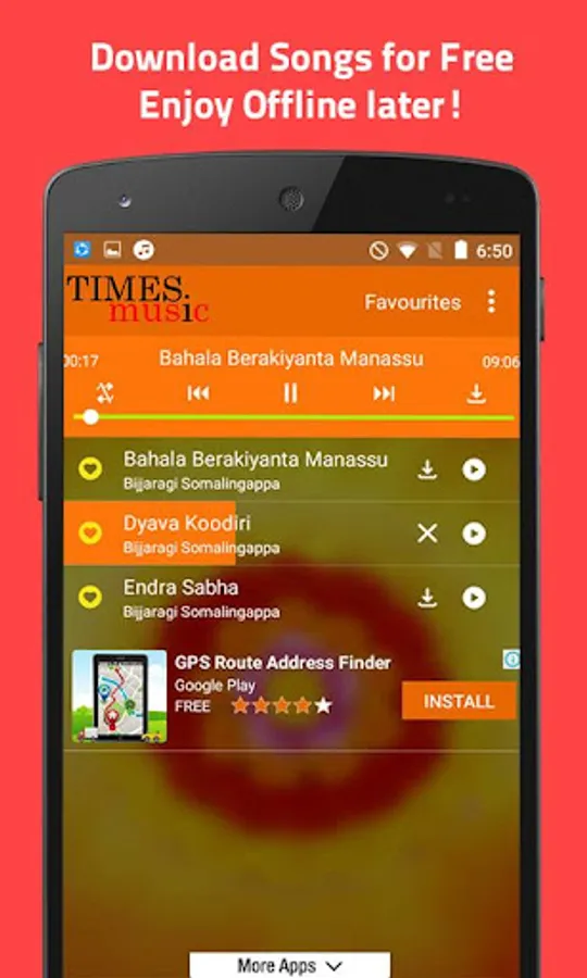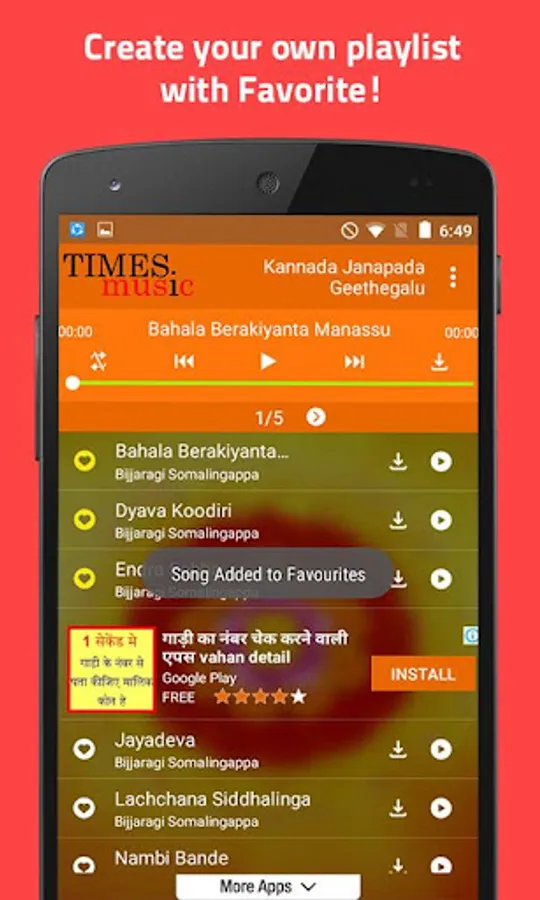 The app lets you download, listen and also lets you mark your favourite songs. The app is a store house of the best Kannada Janapada Geethegalu songs in Kannada.