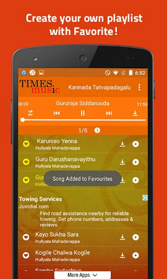 The app lets you download, listen and also lets you mark your favourite songs. The app is a store house of the best Kannada Tatvapadagalu songs in Kannada.
