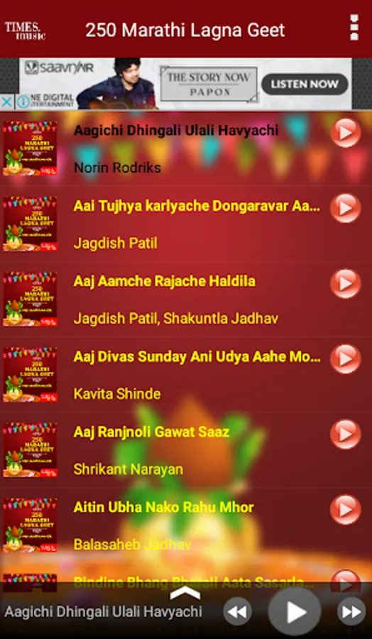 In this app we have we have specially got you a collection of finest Marathi wedding songs sung by renowned artists like Jagdish Patil, Kavita Shinde, Balasaheb Jadhav, Shakuntala Jadhav, Sri Bhanudas Bairagi, Krishna Shinde, Vitthal Umap, S S Hatole, Nehha Rajpal, Swapnil Bandodkar, Ganesh Bhagat and many more.