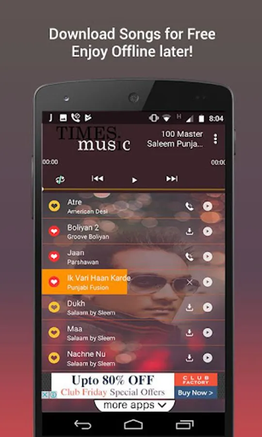 The app lets you download, listen and also lets you mark your favourite punjabi songs. The app is a store house of the best songs by Master Saleem.