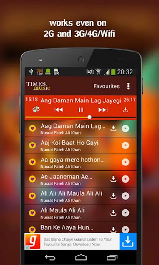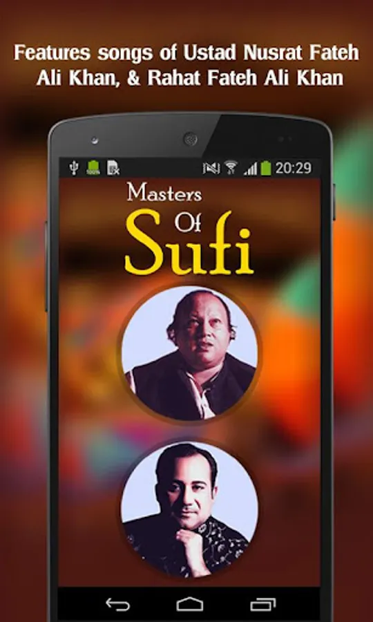 The masters of Sufi and Qawwali form of music come together in this app. This double delight app features some of Nusrat Fateh Ali Khan & Rahat Fateh Ali Khan's finest tracks. After having enthralled audiences in India, Pakistan and the world over with their mesmerising music, the uncle nephew duo give you their biggest hits as well as some unheard soulful tracks in this app.