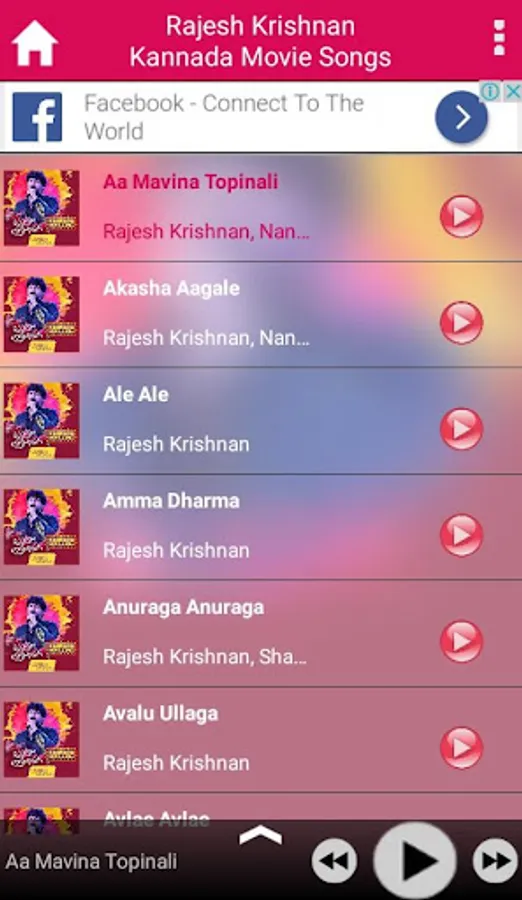 Download this app and listen to Rajesh Krishnan Kannada Movie Songs absolutely free. Songs from the biggest Kannada movies like Valmiki, Premakke Sai, Paartha, Swamy, Dakota Express, Om Ganesh and many more.