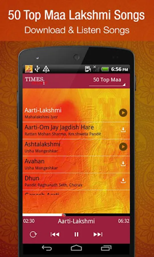 Download this app and listen to 50 Top Diwali Songs For FREE. Goddess Lakshmi Aarti, Bhajans, Chalisa, Vrat Katha, Mantra, 108 names, etc. The best of Shree Lakshmi Mata songs wrapped together to give you a rare collection. Worship Maa Lakshmi this diwali to bring prosperity, love, wealth, fortune and the embodiment of beauty through this app. 50 Most Popular Diwali Songs in one single app. Just hit play to listen to any track from the playlist. Also you can share on various social networks. Spread the bhakti and devotion through this app.