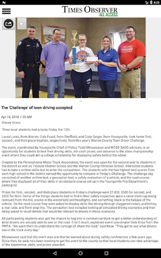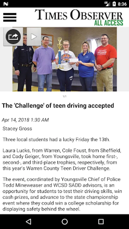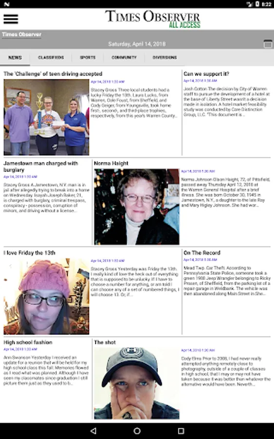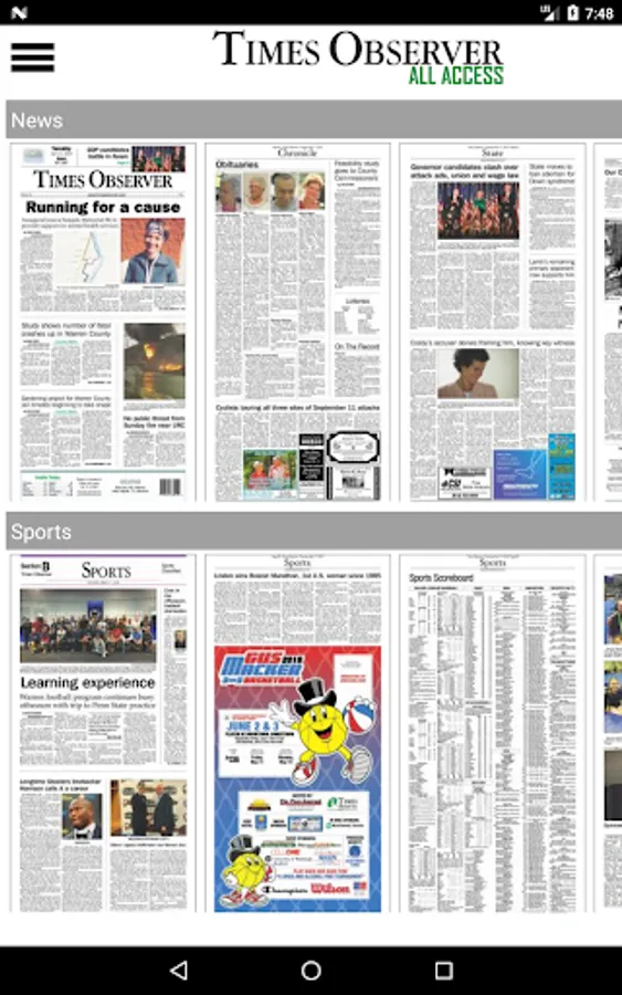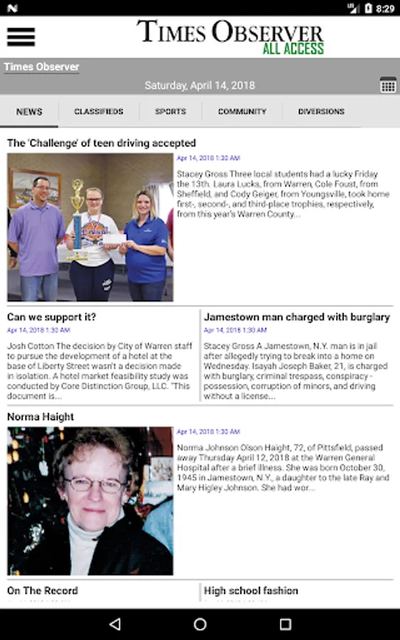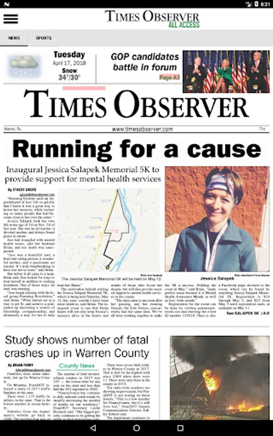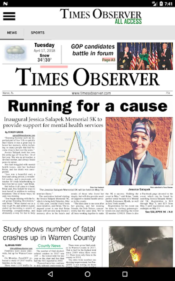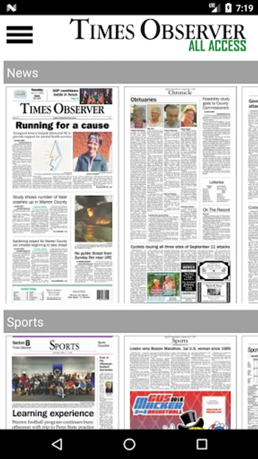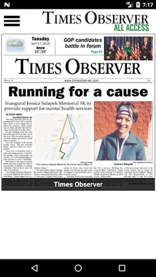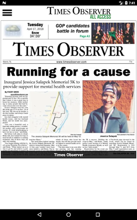 Stay on top of news from Warren and surrounding areas by receiving the full print version of the Times Observer on your Android device. Every page of every edition is delivered to your device. The Times Observer is the best source for local and national news, sports, weather, and features in the Warren County area of northwestern Pennsylvania. Download the app to view the printed pages of the newspaper or read headlines and stories along with related photos in a built-in story viewer.