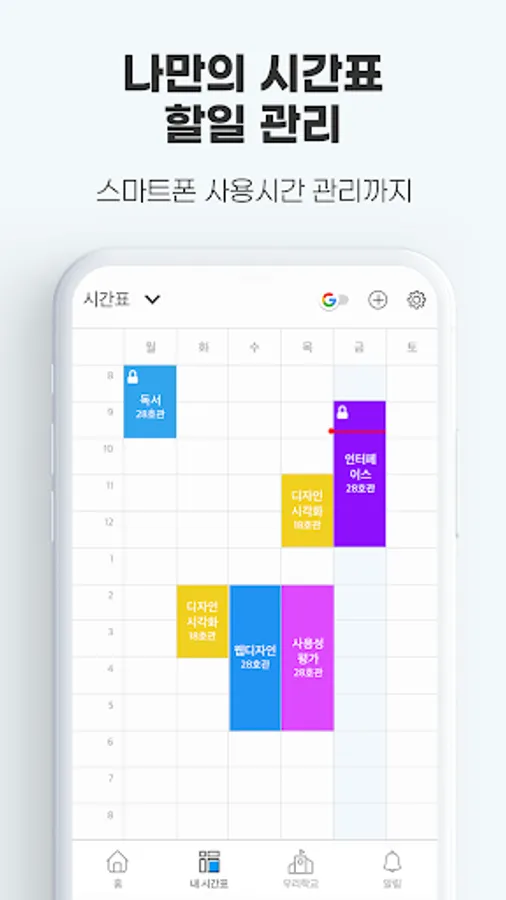1. Apptech, timetable, alarm, to-do, memo, challenge function to solve schedule and time management