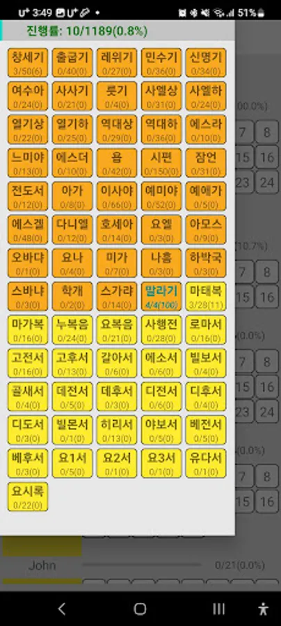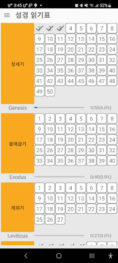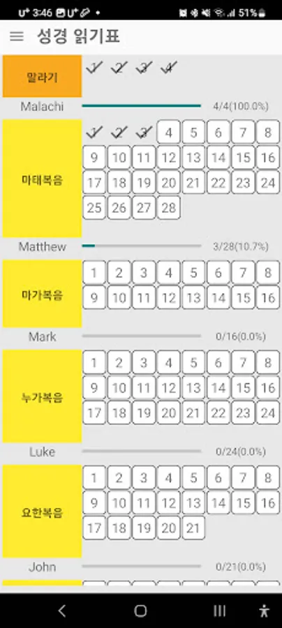Mark the chapters of the Old Testament (39) and New Testament (27) as read