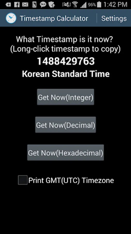 This application has "Timestamp Widget", you can place the widget to homescreen and you can see Timestamp anywhere, anytime,