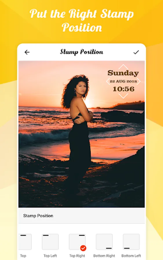 Keep moment stamp moving with variant photos using this date and time camera so that, the Custom stamps donโt hide anything in background. Choose an apt Date stamp template position before you add timestamp to photos: