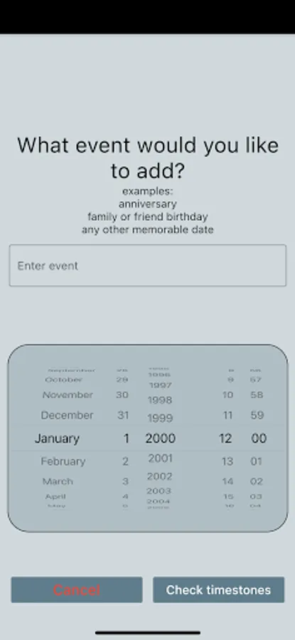 Simply enter any events you would like, and we will do the rest. Time to start celebrating your timestones!!