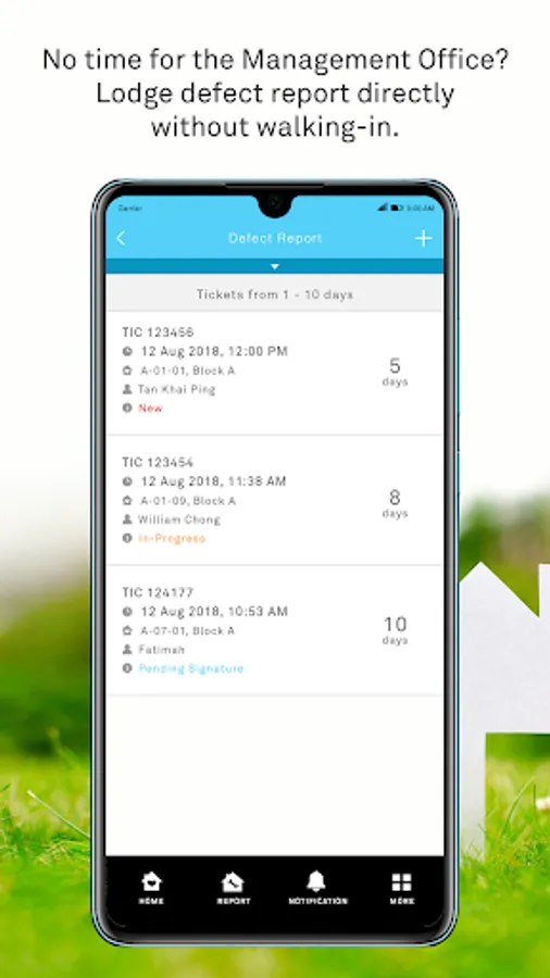 Residents can report defect items within their neighbourhood and unit through this feature. A hassle-free process for residents to perform defect reporting without having to go to the Management Office. Similarly, residents will also receive updates and alert on the latest status of their reports.