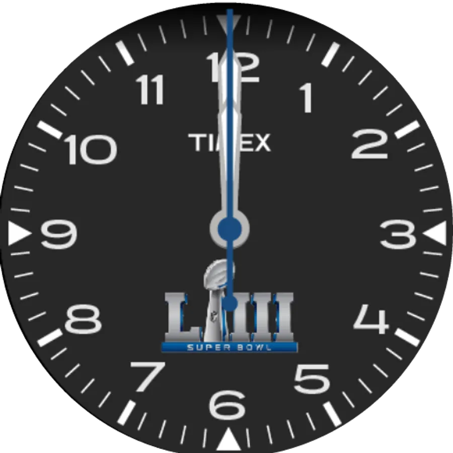 Classic Analog Watch face for wear OS. Superbowl LIII theme.