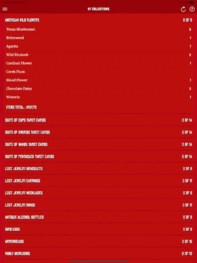 Keep track of all your collectables so you can see exactly how many you have, and what's needed to complete each collection for maximum profit.