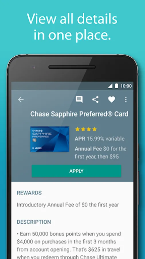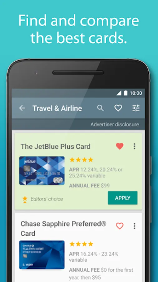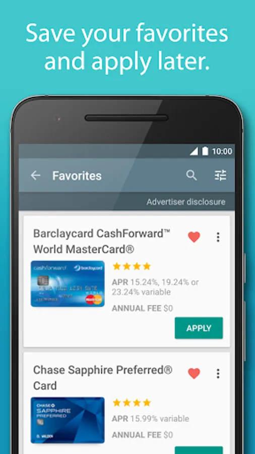 You can now browse through all the credit card offers that fit your preferences at once and apply directly for the right credit card, directly from your phone.