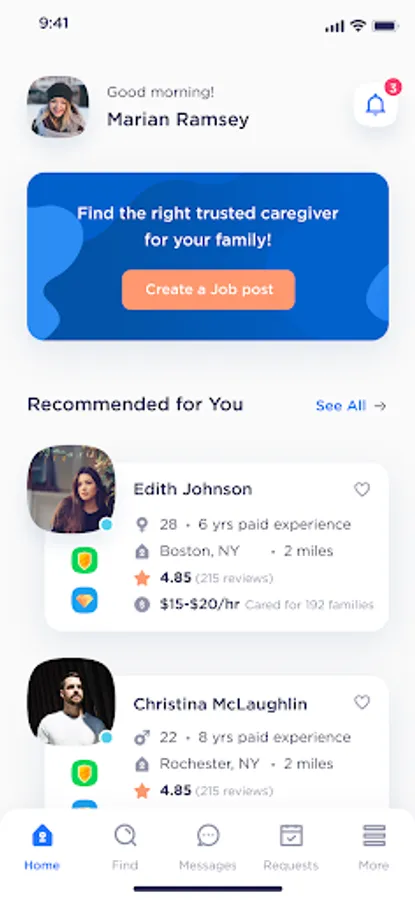 An app help your find the right trusted caregiver for your family. Share your needs by creating a job post. Easy connect caregiver, payment.
