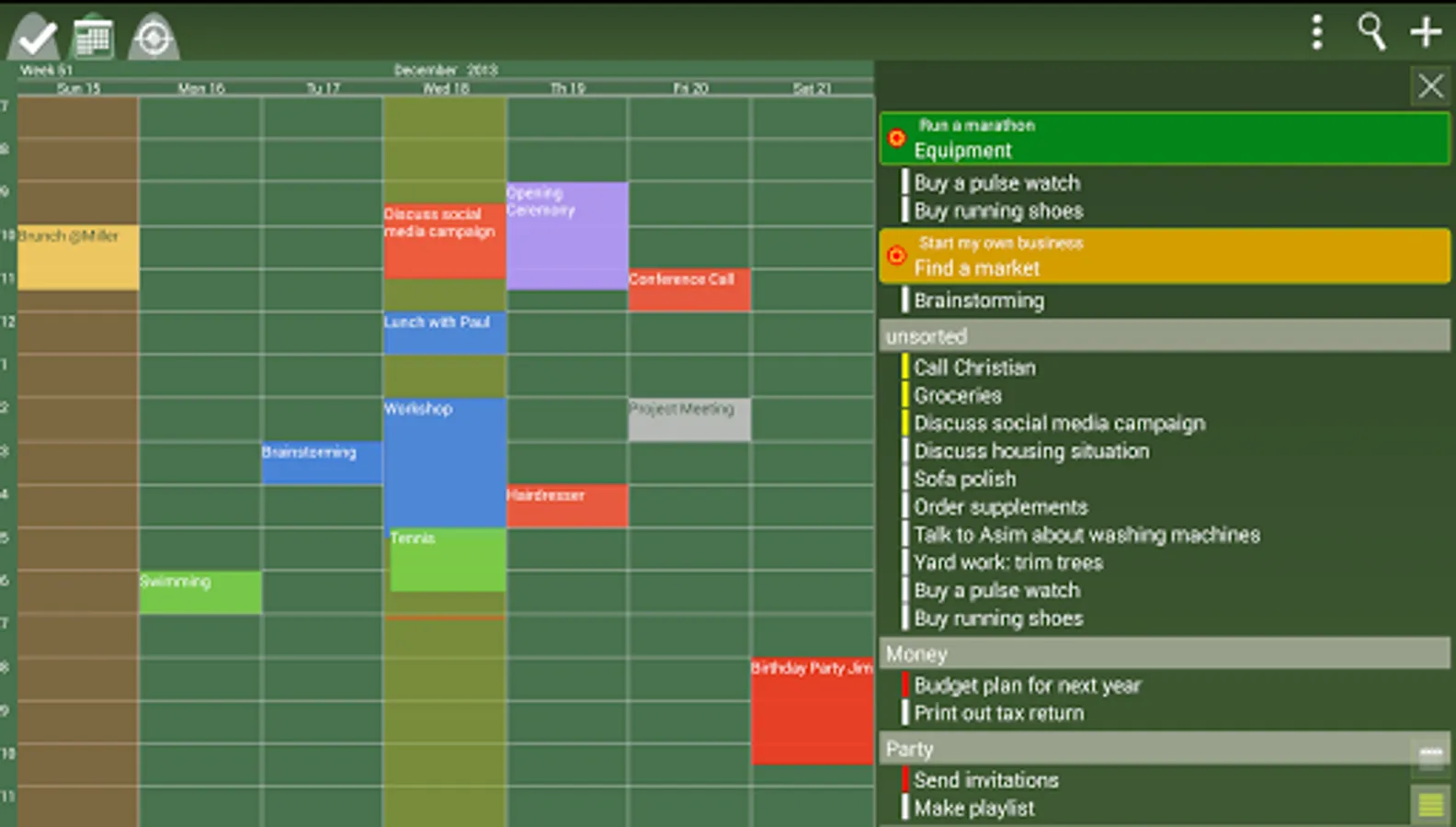 • Define your personal goals and add tasks to them