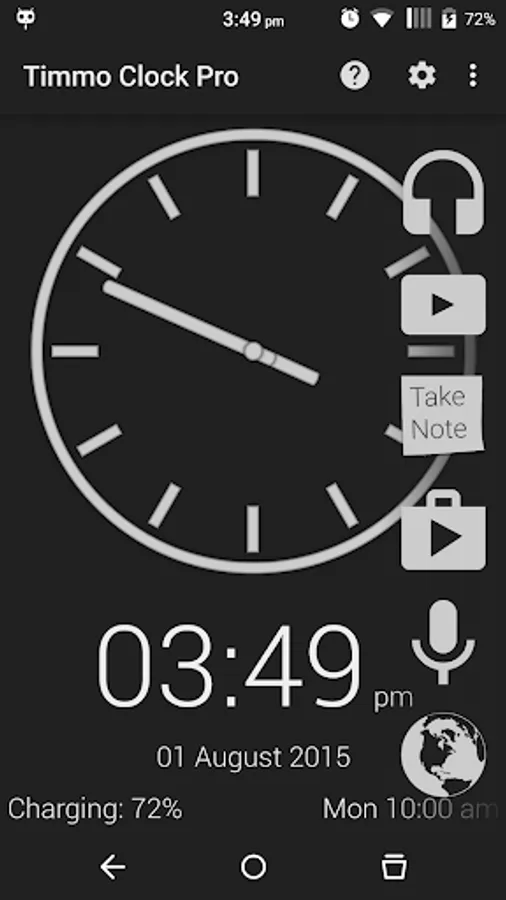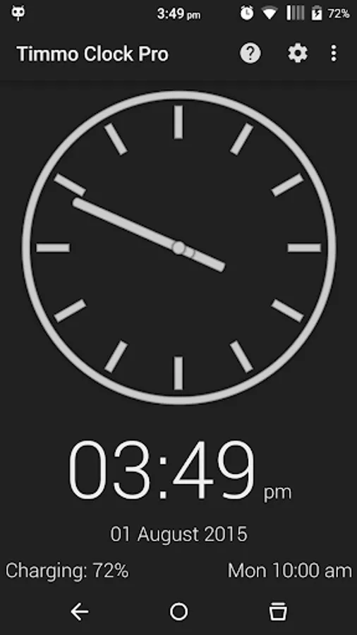 Timmo Clock is a desk clock with many intuitive and customisable features such as fullscreen; night mode which lowers your device's brightness; quick shortcuts to useful applications such as your music player or browser and a handy stopwatch with laps screen.