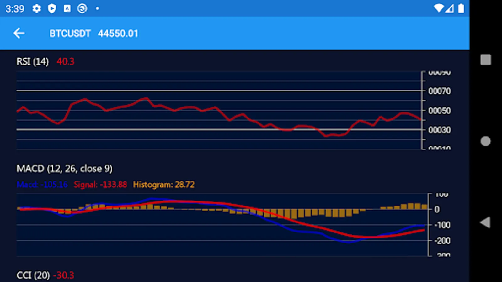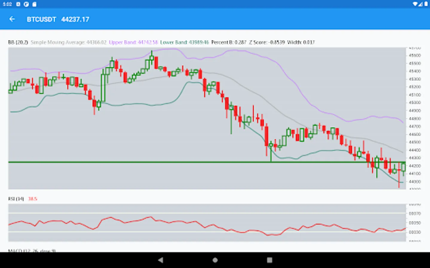 It’s the best app for technical analysis with trading indicators and trend indicators such as Relative Staerke Indikator(RSI), Bollinger Bands(BB), Moving Average Convergence Divergence (MACD) and Commodity Channel Index (CCI).