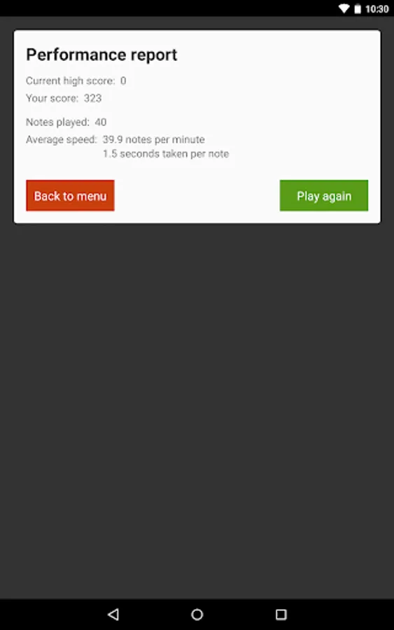 In each exercise, Sight Reading Trainer will ask you to play a note on your piano. If you play it too low or too high, it will let you know so you can correct yourself. If you play it correctly, your score increases and you move on to the next note. In each exercise, the goal is to play as many notes as you can in one minute.