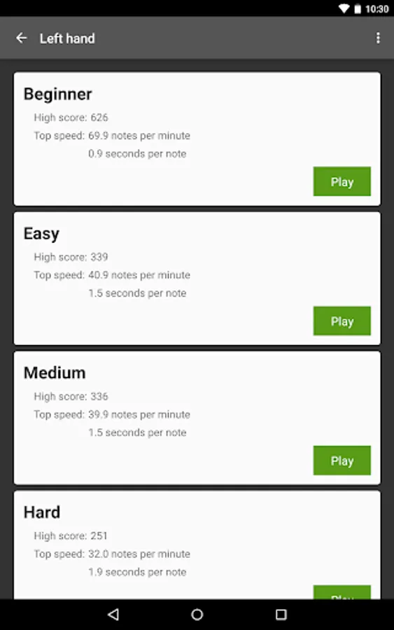 There are multiple difficulty levels, from Beginner to Hard, so Sight Reading Trainer helps whether you're a complete piano beginner or an advanced player.