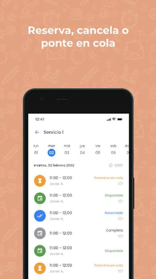If when you reserve your class you start to queue, it is because the class is full, as soon as there is a free place you will receive an email indicating that you can now reserve your class.