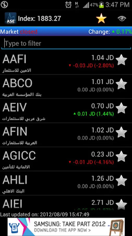 Amman Stock Exchange (ASE) Explorer gives you an easy way to monitor your favorite companies stock quotes trading in Jordan.