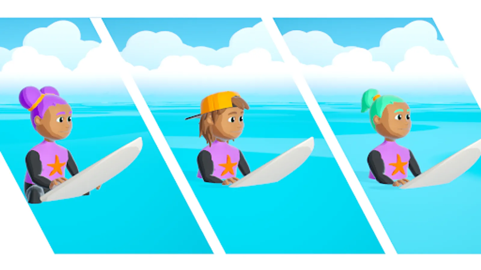 Design the surfer to your liking, from appearance to clothes and accessories.
