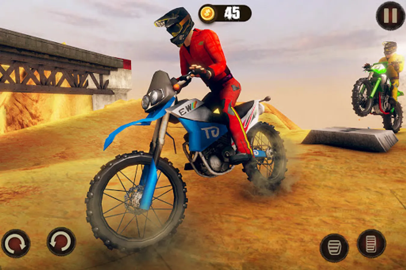 The game has one the best 3D graphics with the motorbike’s competition. You can enjoy the feeling of real based dirt bike games, stunt like original and accident will also happen so be drive careful. Enjoy very attractive and beautifully designed bike racing tracks.