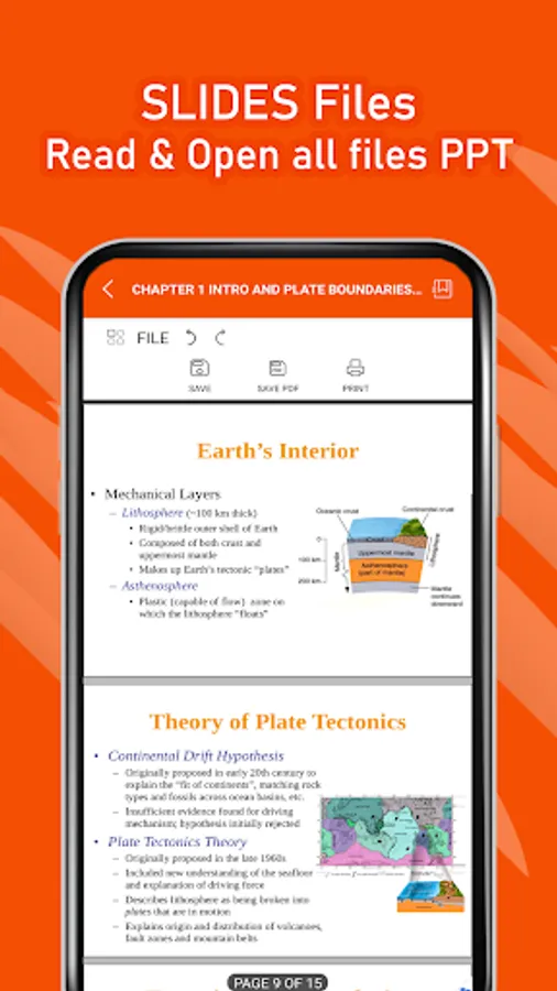• Support for PPT files and pptx reader with high resolution and fast performance.