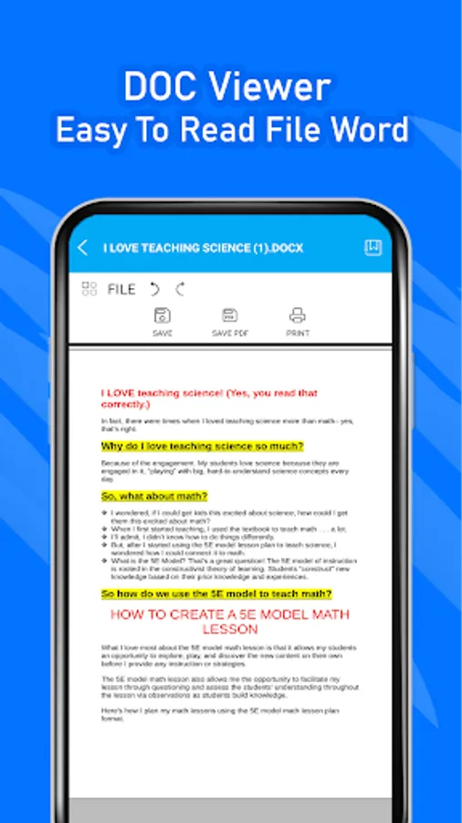 You are in the right place. Document Reader 2023 is an application that will help you open all your files like PDF, DOC, DOCX, XLS, XLXS, PPT, TXT, etc. without the need of your computer.