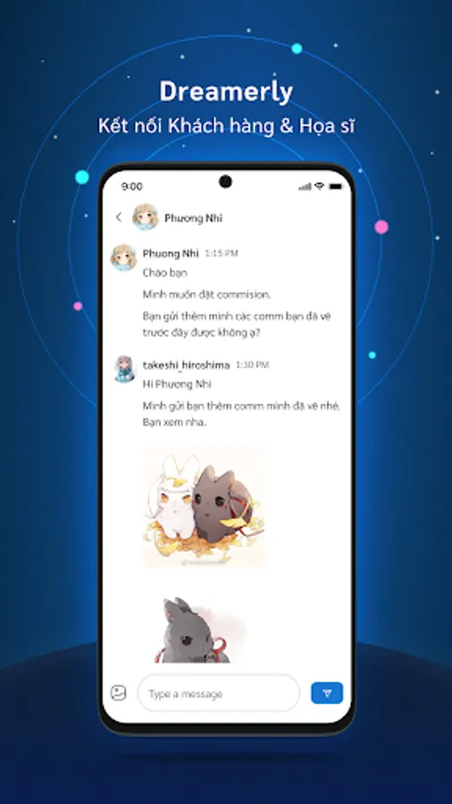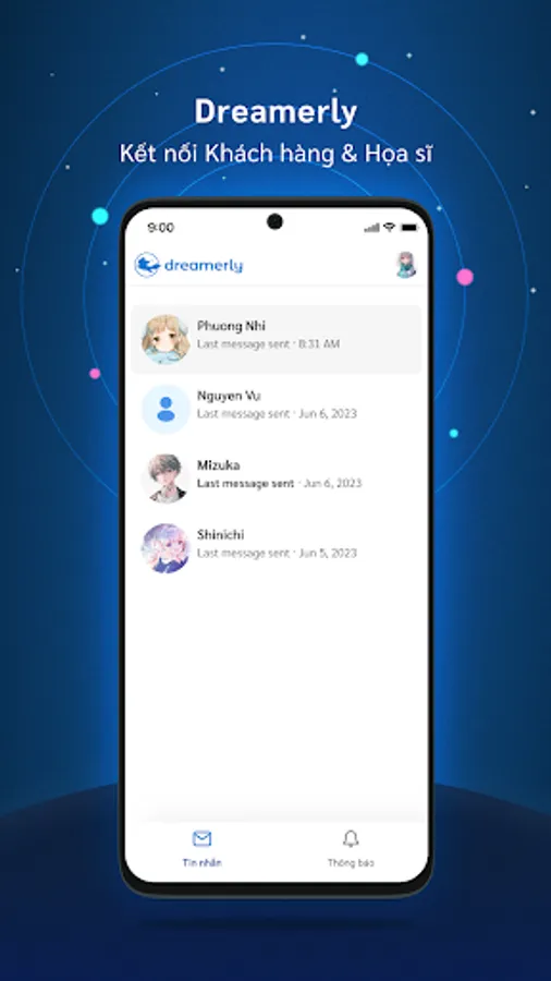 Dreamerly is a chat and notification app for Dreamerly users, the art commission platform of Vietnam. With Dreamerly, you can talk with other artists and customers, and receive the latest updates on your commissions.