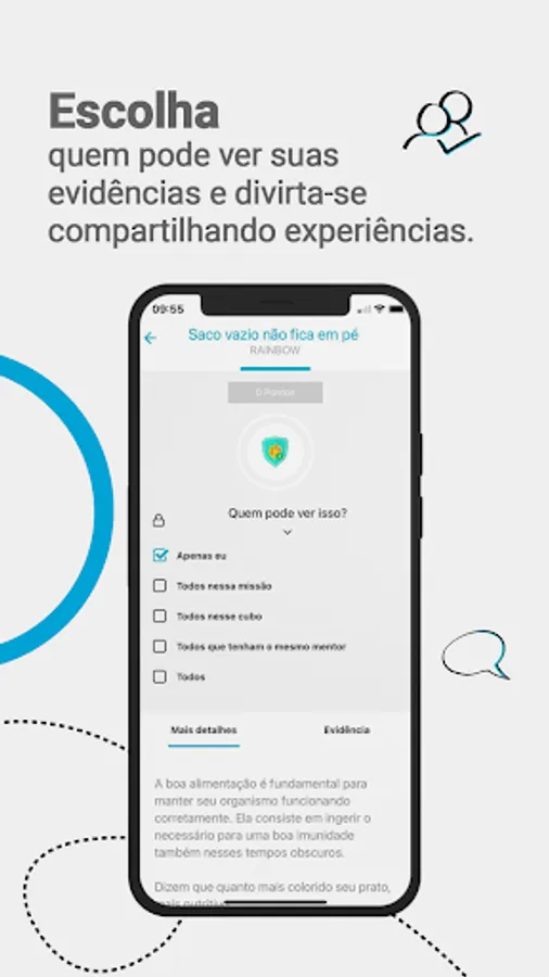 The apprentice has the autonomy to decide who can see their evidence on the timeline, being able to choose between mentors, apprentices from the same cube or make them public for everyone to see.