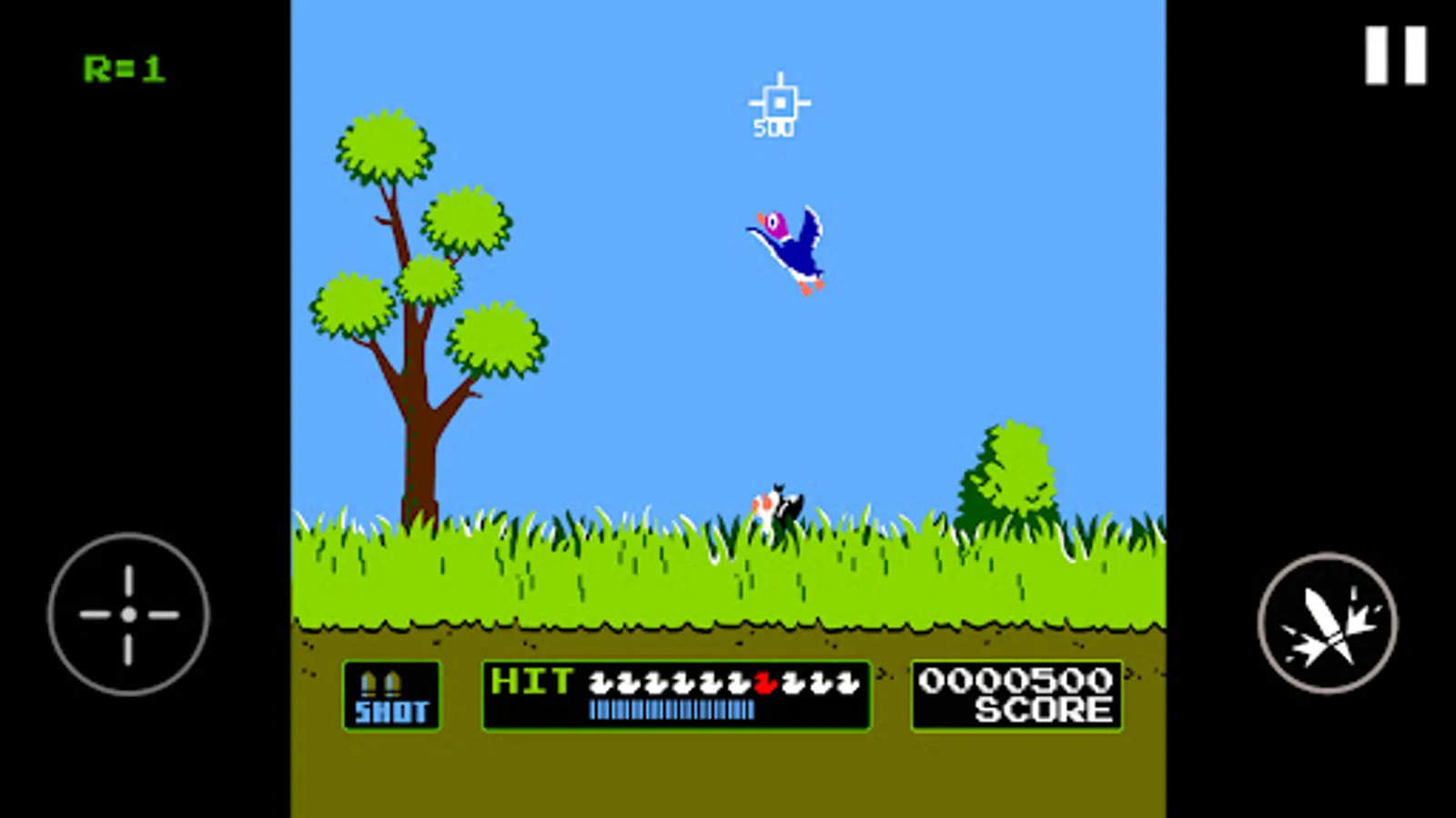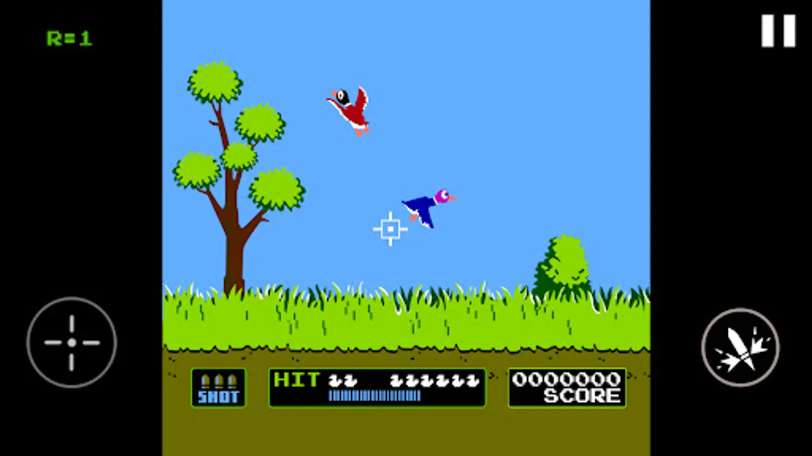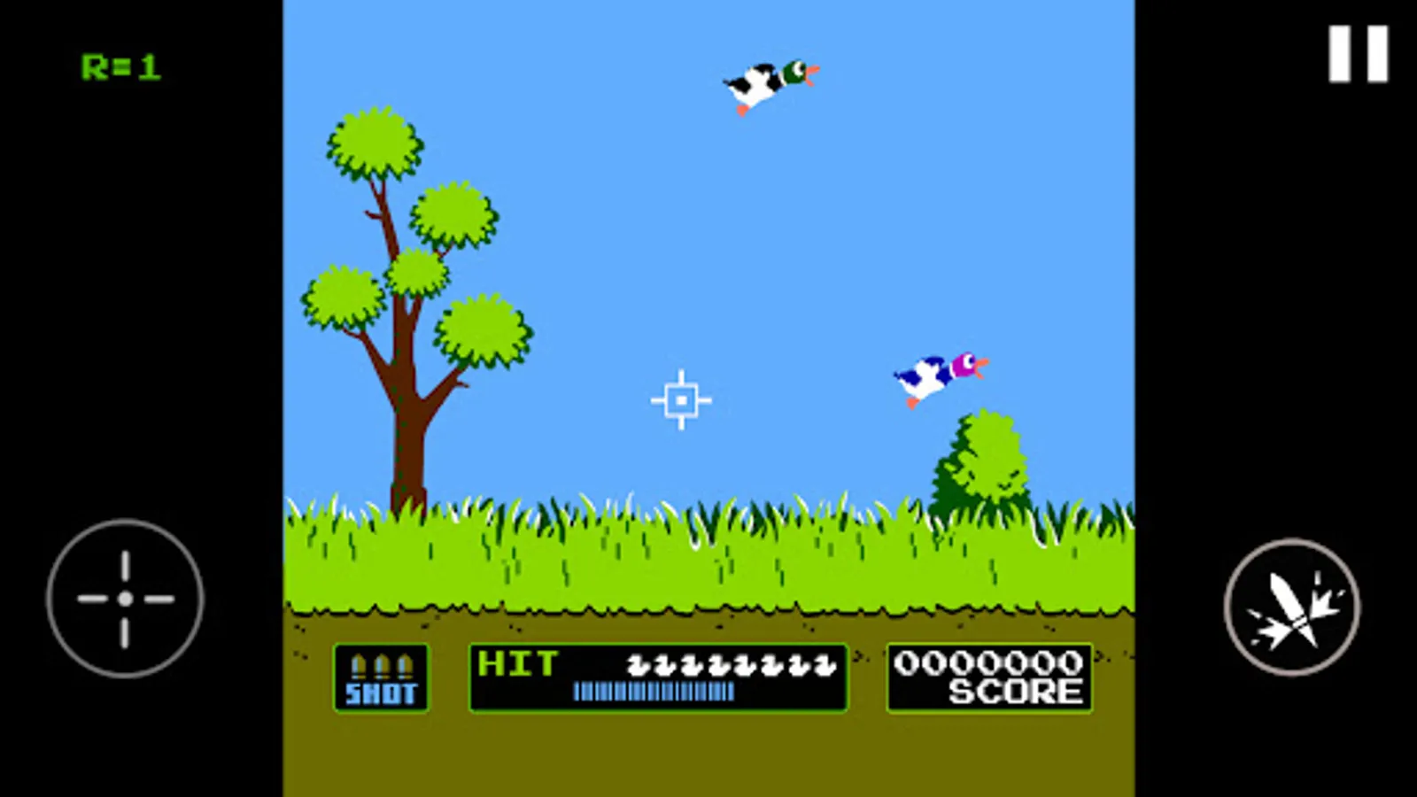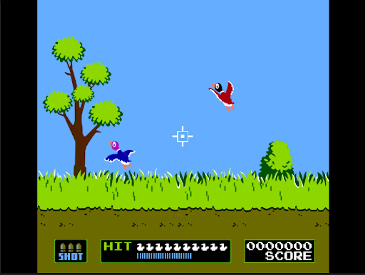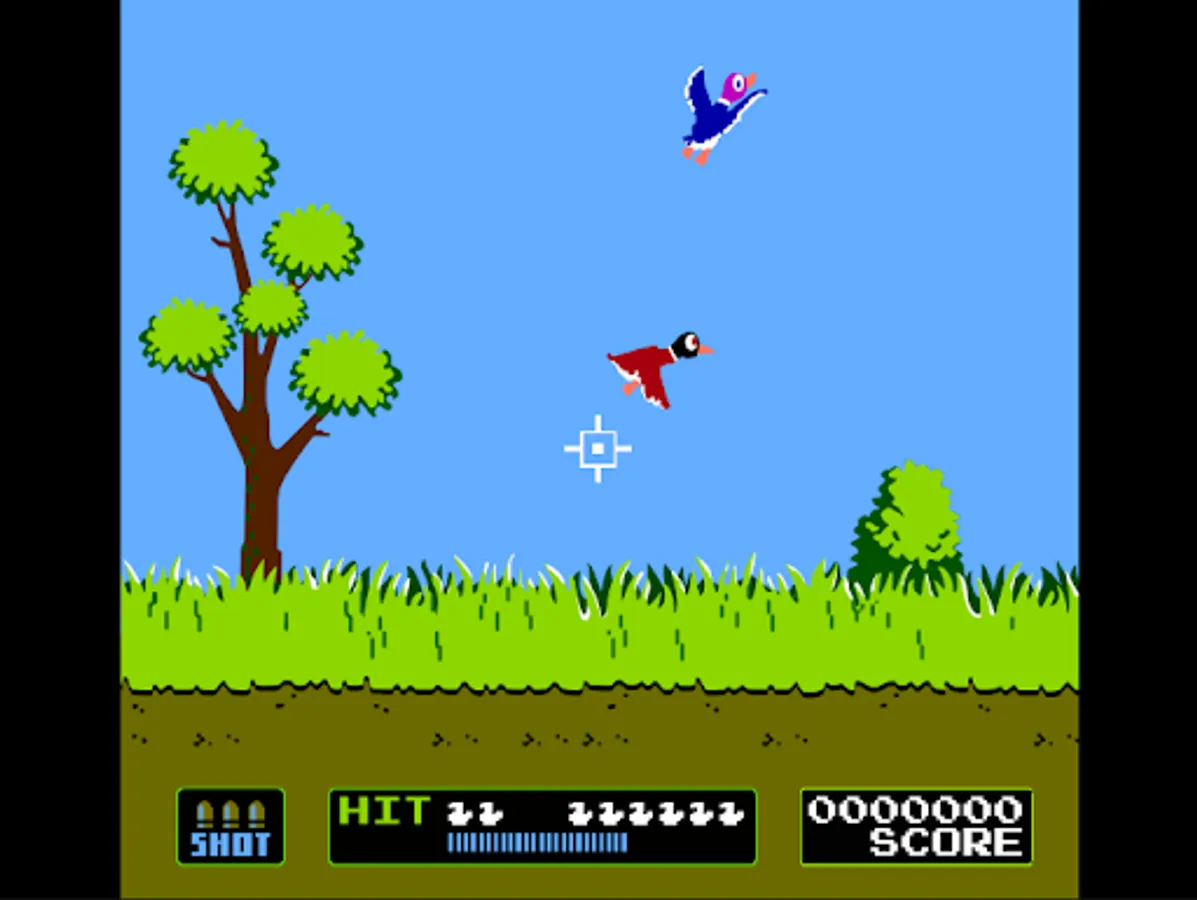In Duck Hunt, players shoot ducks that appear on the screen. The ducks appear one or two at a time, and the player is given three shots to shoot them down before they disappear. The player receives points upon shooting each duck. If the player shoots the required number of ducks in a single round, the player will advance to the next round; otherwise, the player will receive a game over.