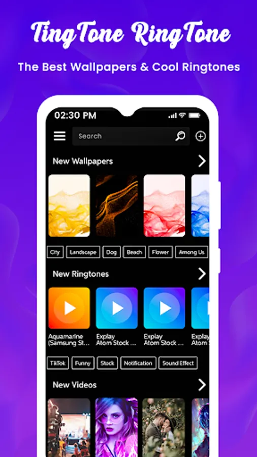 - Many categories for easy search, you can find notification, voice, music or funny ringtones