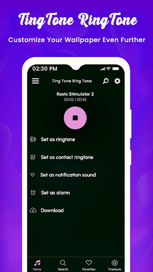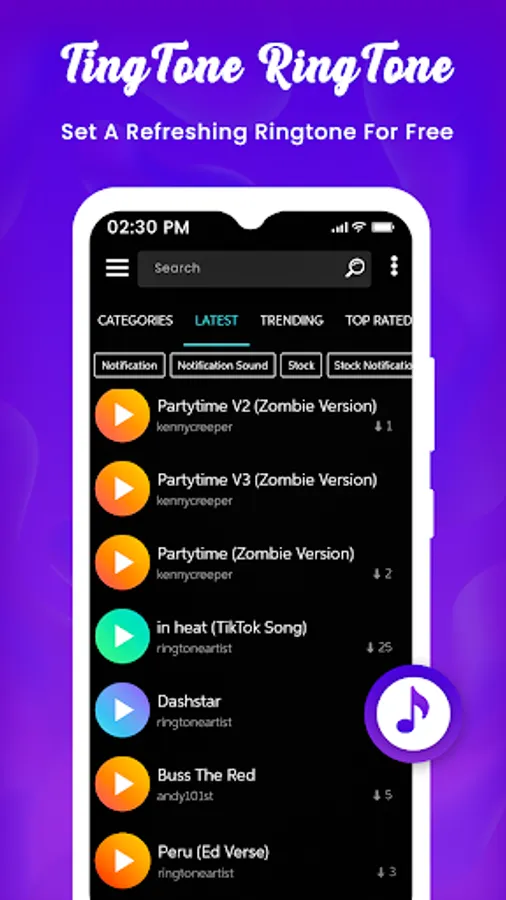 - Set populer ringtones, contact ringtones, alarm and notification sounds from this app