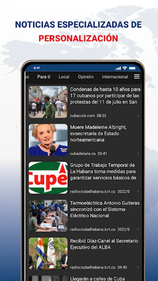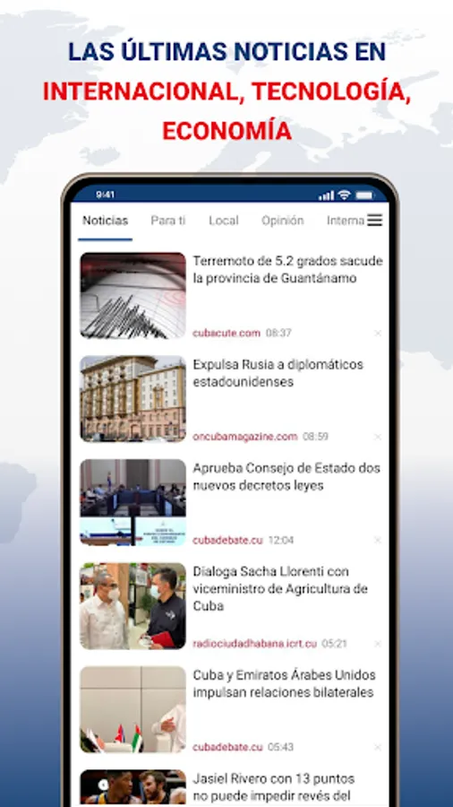 Cuba Noticias is the BEST news application that every Cuban people expects. This application brings you the latest news and videos from most of the newspapers in Cuba. You can quickly and easily read Cuba news in many categories: sports, travel, health, videos, entertainment, education, business, breaking news ...