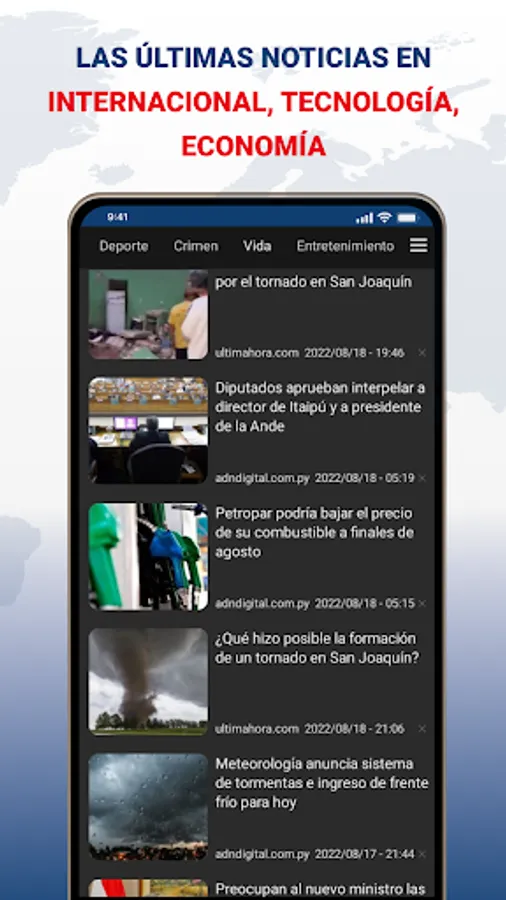 Paraguay Noticias is the BEST news application that all of Paraguay expects. This application brings you the latest news and videos from most of the newspapers in Paraguay. You can quickly and easily read news from Paraguay in many categories: sports, travel, health, videos, entertainment, education, business, ...