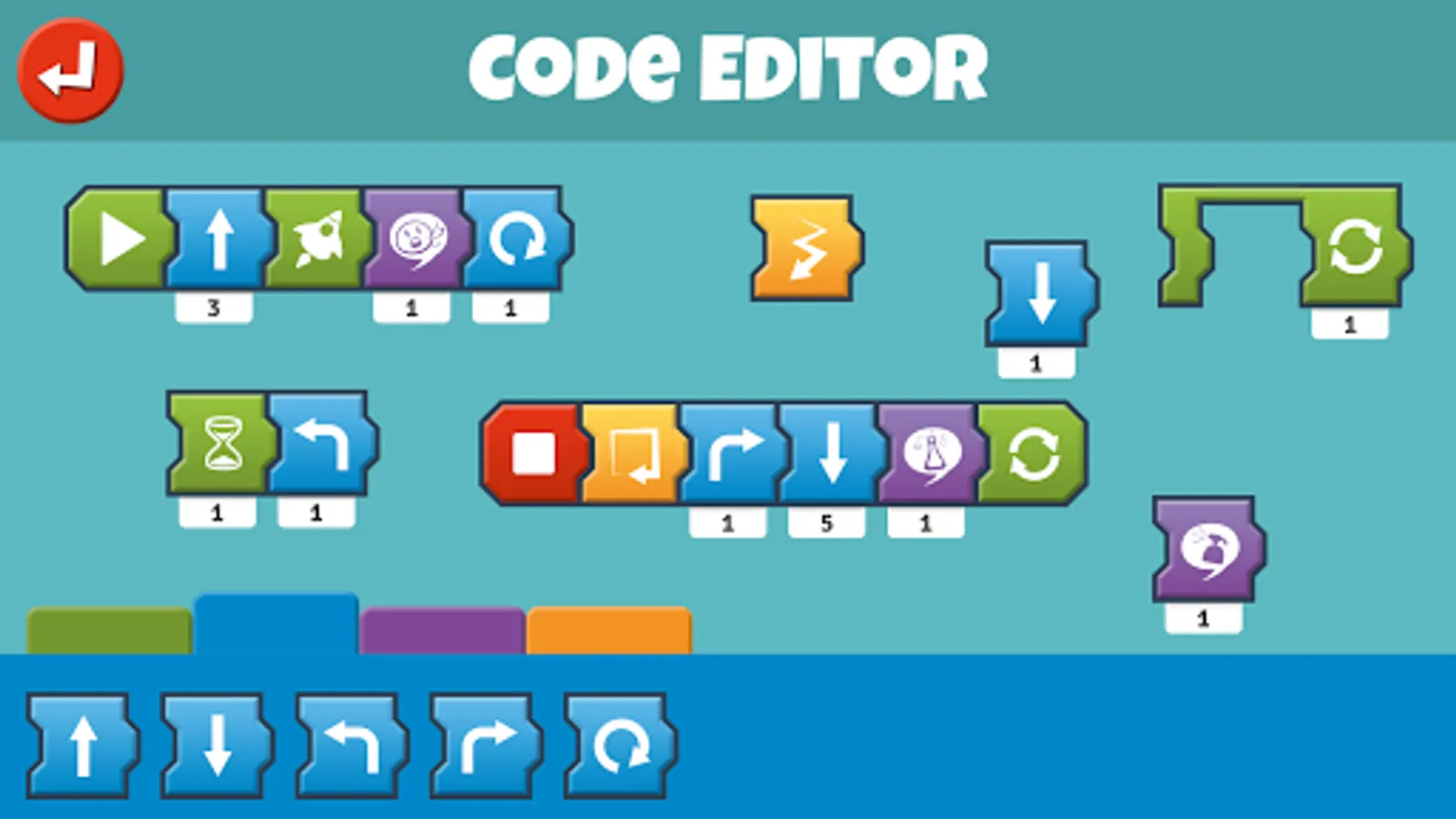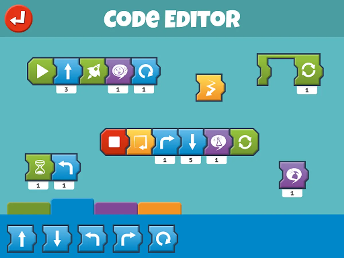 The Code Editor lets you bring your robot to life when you have unlocked all the code blocks in Game Mode. Create your own routes and let your creativity run free.