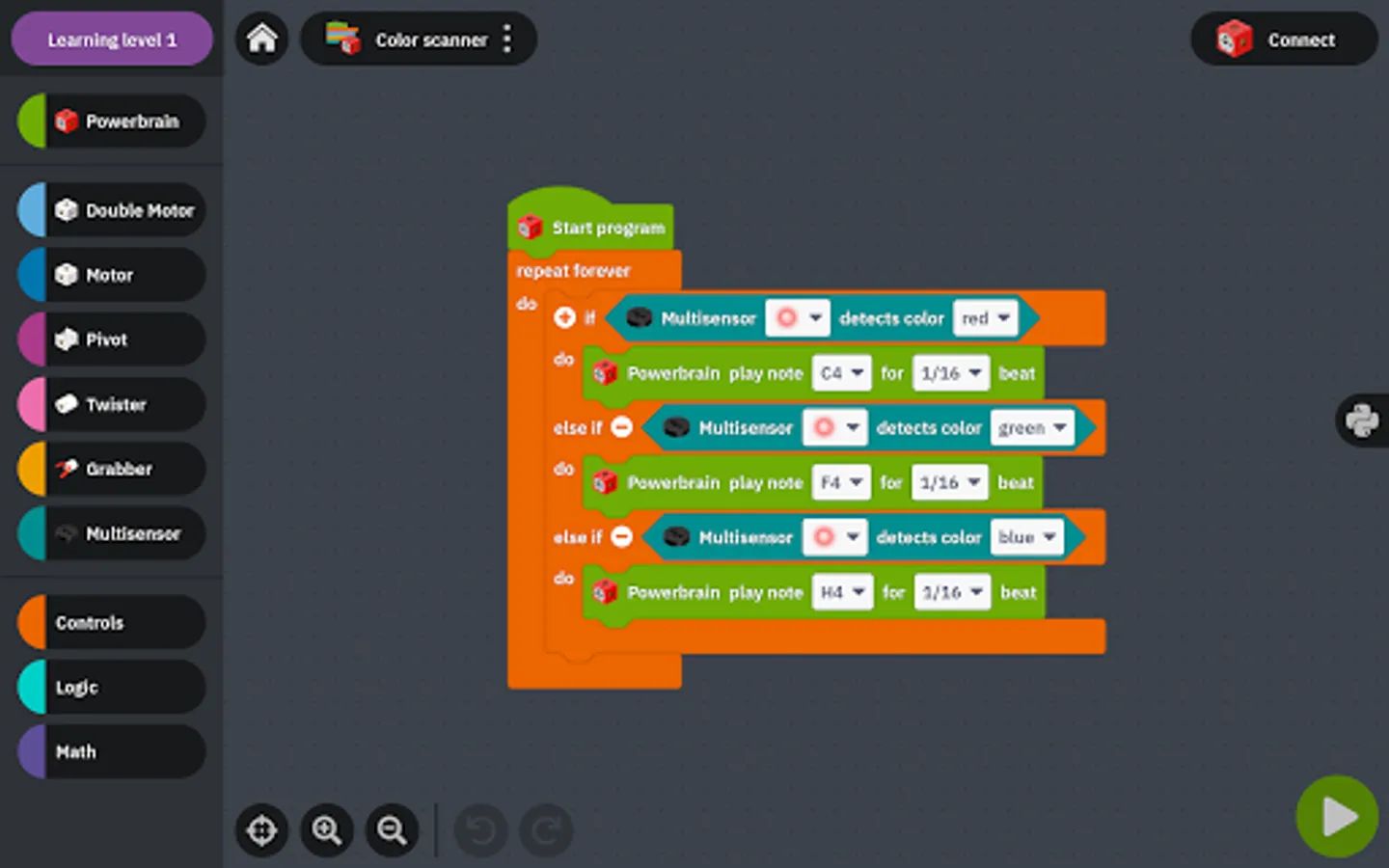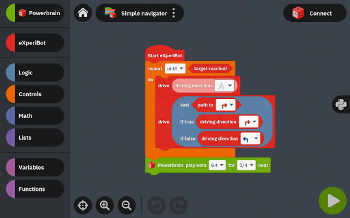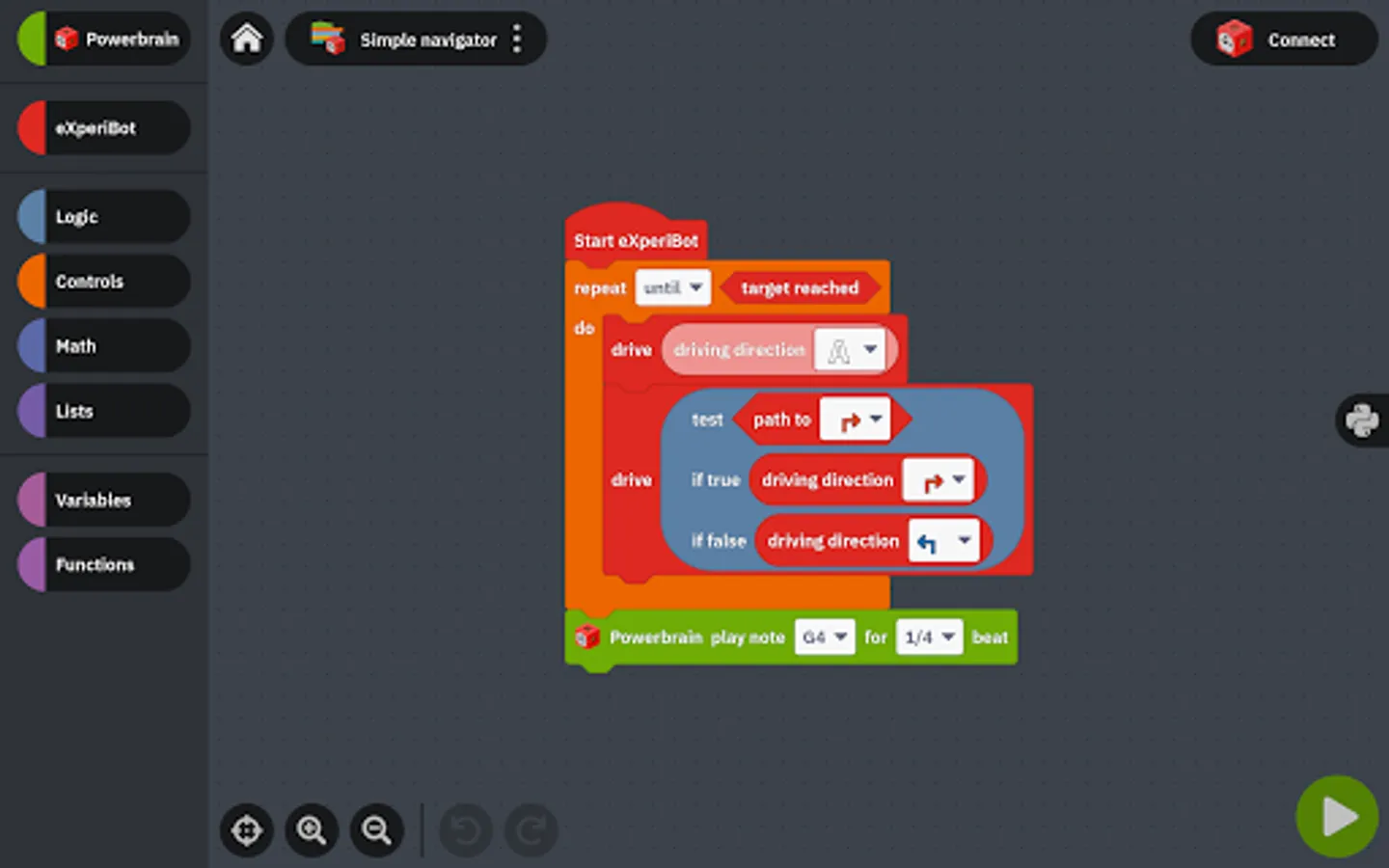 Tinkerbots Blockly is a visual programming editor specifically designed for programming Tinkerbots robots. With the intuitive drag-and-drop function, basic programming concepts such as loops, variables, conditions, etc. can be taught. With the help of the various programming blocks, children from the age of 10+ can make their first experiences with programming. With the possibility to display the code also in the programming language Python, Tinkerbots Blockly is also suitable for the use in high school classes.